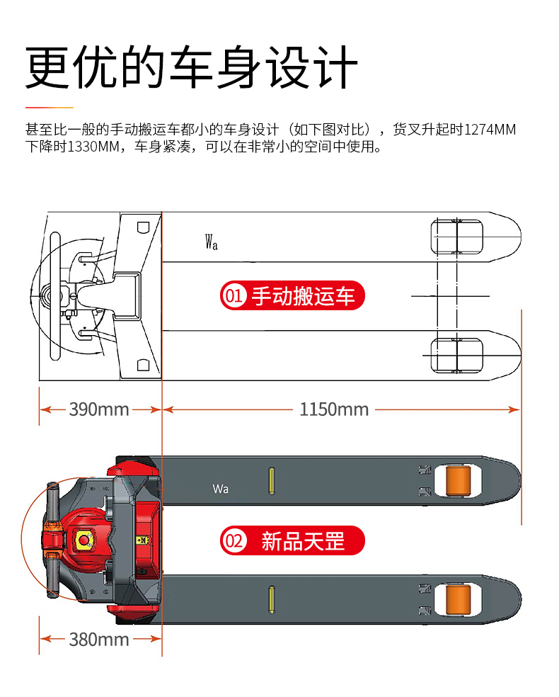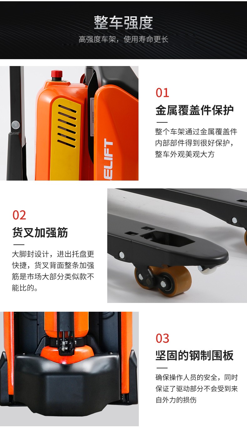 ● 貨叉采用腳封設(shè)計(jì),進(jìn)出托盤(pán)更快捷,同時(shí)提高了貨叉的強(qiáng)度,貨叉背面整條加強(qiáng)筋,讓整個(gè)車(chē)子貨叉強(qiáng)度大化。